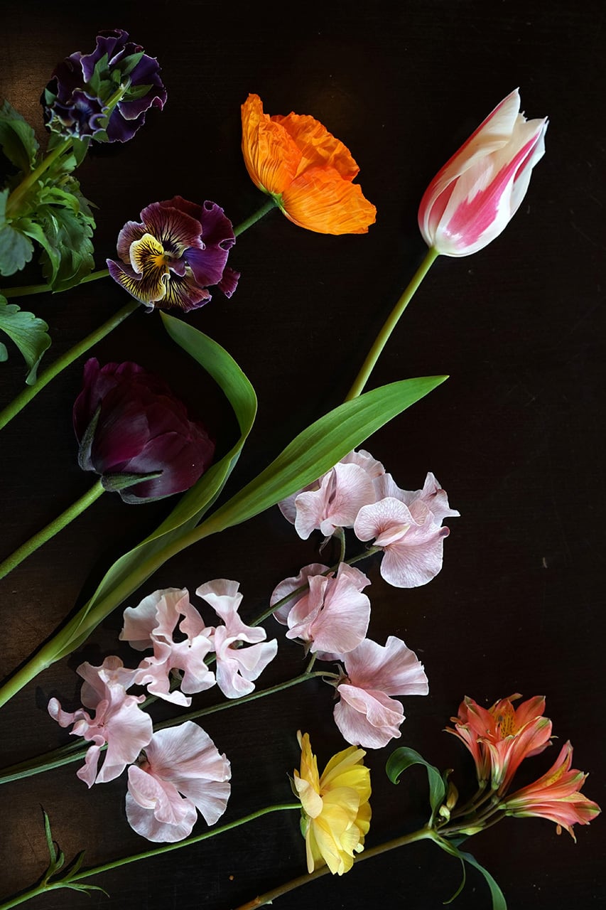 ラナンキュラスなど、”春の花たち” を束ねます。